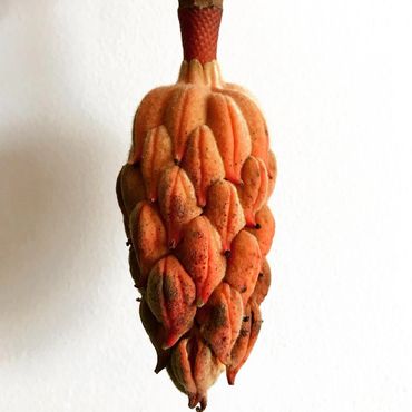 Centrado en los frutos de árboles nativos y endémicos de Latinoamérica, especialmente aquellos catalogados en las listas rojas de especies amenazadas como la de la Unión Internacional para la Conservación de la Naturaleza (IUCN), el listado oficial de especies silvestres amenazadas (Resolución 0126 de 2024 de Min Ambiente) y los libros Rojos de especies amenazadas de los institutos Humboldt y Sinchi, el artista crea una serie de imágenes y esculturas en las que reflexiona sobre los impactos nocivos en las especies y el paisaje de prácticas como la minería, la expansión de la frontera agrícola, la tala ilegal y el desmedido crecimiento de los centros urbanos.
